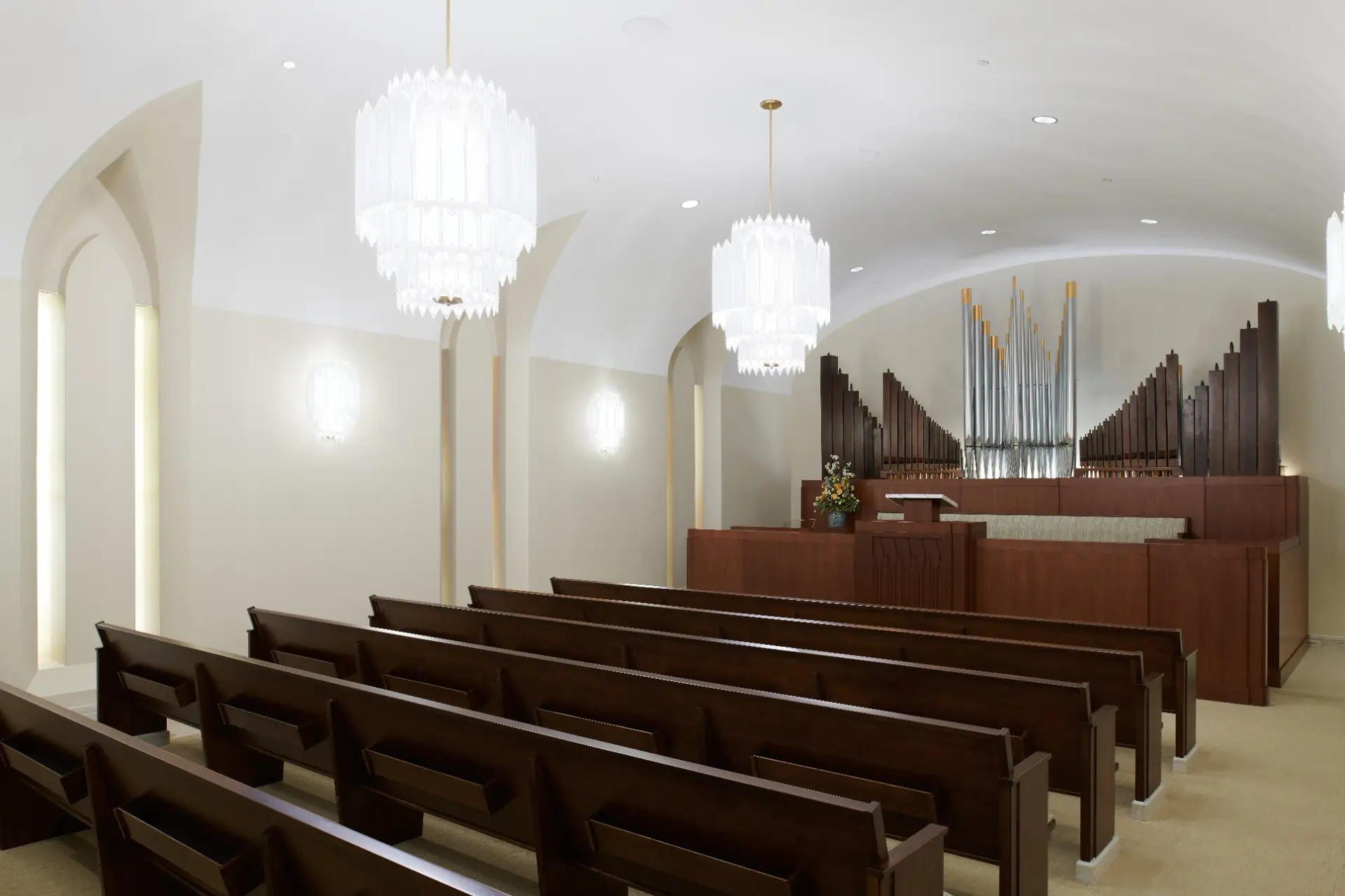 La chapelle à l'intérieur du temple de Washington DC, janvier 2022. ©2022 Intellectual Reserve, Inc. Tous droits réservés.