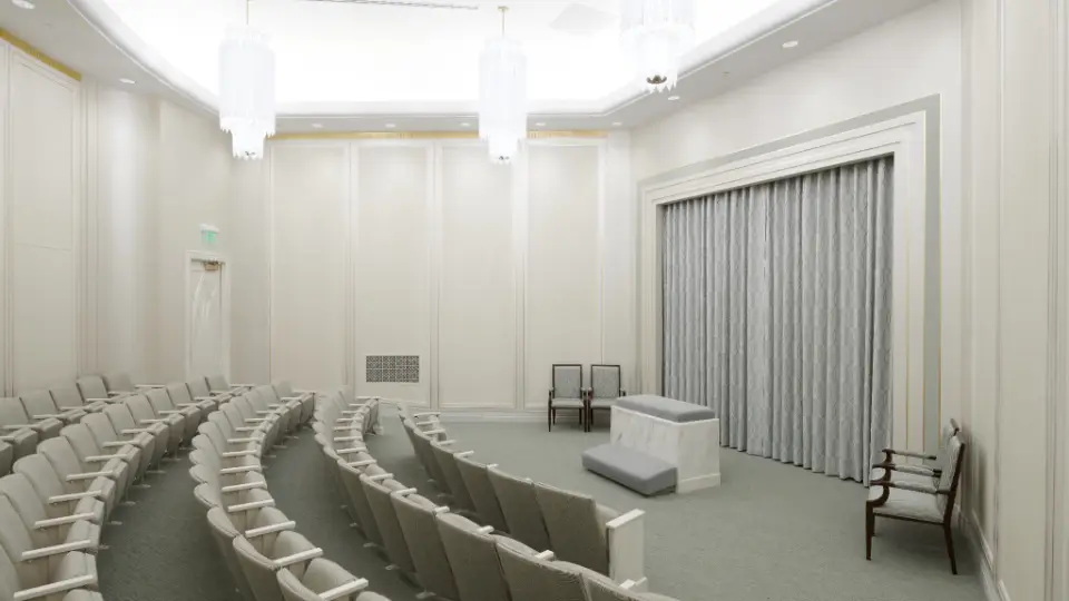 L'une des six salles d'instruction du temple de Washington DC, juillet 2021. C'est là que les saints des derniers jours pieux découvrent la création de Dieu, le but de la vie et comment devenir davantage comme lui et son Fils, Jésus-Christ. ©2022 par Intellectual Reserve, Inc. Tous droits réservés.